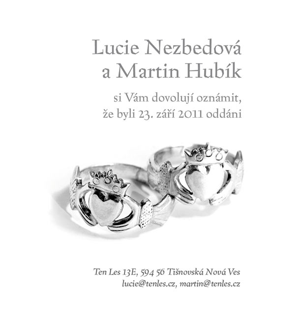 Vy, kdož jste při tom nebyli, nahlédněte do galerie kde najdete pár fotek našich svatebních.